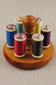 Réédition de quatre petites bobines en bois. Elles sont étiquetées d’images de notre mercerie.