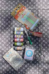 - un carnet de 15 aiguilles à coudre assorties, motif identique à celui de la boîte,
