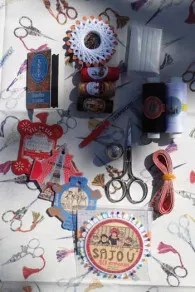 - un mètre ruban de couturière rouge Sajou pourvu d’un anneau à chaque extrémité,