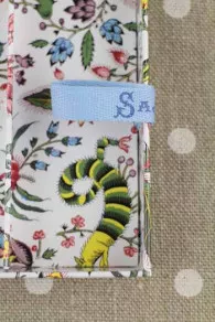 Boîte à couture vide recouverte de notre papier indienne Coquecigrues, composée de deux plateaux intérieurs, celui du dessus étant amovible et pourvu, de chaque côté, de deux petits rubans Sajou facilitant la préhension. Elle ne comporte pas d’étiquette.