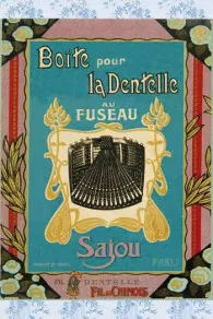 Boîte à couture vide composée de deux plateaux intérieurs, celui du dessus étant amovible et pourvu, de chaque côté, de deux petits rubans Sajou facilitant la préhension. Elle est recouverte d’un de nos papiers bleu et blanc, le motif des plateaux pouvant être différent. Son couvercle est revêtu d’une étiquette dans le style des années 1930, représentant un carreau de dentellière.