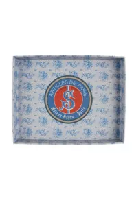 Elle est recouverte d’un de nos papiers bleu et blanc, le motif des plateaux pouvant être différent. Son couvercle est, à l’extérieur, revêtu d’une étiquette inspirée par notre tissu coton Ma Belle Ville de Paris, l’intérieur est décoré d’une étiquette ronde Sajou Articles de Paris.