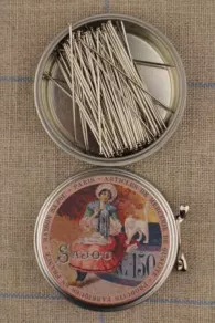 Cet assortiment est composé d’une boîte contenant environ 150 épingles de couturière classiques super fines n° 4 et d’une boîte contenant environ 80 épingles de couturière fines n° 12.