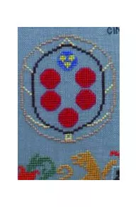 Cet ouvrage de broderie au point de croix se présente sous la forme d’une grande affiche en couleurs mesurant 68 x 80 cm. Au recto se trouve la grille, au verso toutes les informations historiques ainsi que les explications pour la réalisation de la broderie. L’affiche est présentée pliée dans une pochette Sajou.