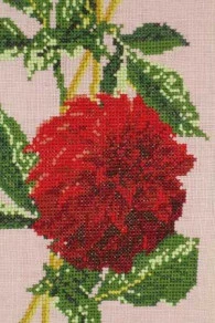 Ce kit de point de croix vous permettra de broder de beaux dahlias rouges, ouvrage dérivé de notre spectaculaire grille consacrée aux Plantes Tinctoriales dans la Collection Musées et Patrimoine.