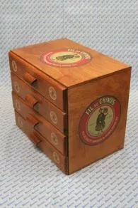 Indispensable dans tout atelier de brodeuse ou de couturière, pour y ranger tous vos petits trésors. Ce petit meuble à tiroirs est dans la tradition de ceux qui garnissaient autrefois les merceries. Le plus souvent, ils étaient dévolus au rangement des bobines de fil et affichaient la réclame des marques les plus connues.