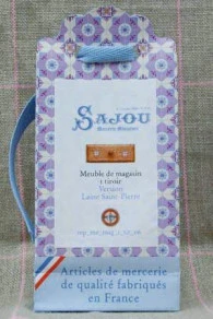 Tous les produits imprimés de la Mercerie Miniature Sajou sont fabriqués en France. Quant aux meubles, ils sont fabriqués spécialement pour la Maison Sajou par une société familiale en Allemagne. Cette société a la particularité de n’utiliser que des bois issus d’exploitation forestière durable et de n’utiliser que des énergies renouvelables.