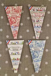 Ils sont présentés dans un étui en carton pliable décoré du motif de l’un de nos tissus. Ce motif peut varier selon nos stocks. Vous pourrez conserver cet étui si vous décollez délicatement l’étiquette se trouvant au dos.