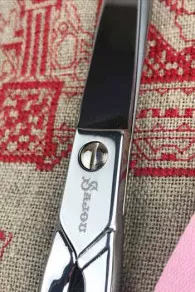 Cette paire de ciseaux de couturière est un modèle très classique, mesurant 7 pouces, soit 17,8 cm. Vous noterez la différence de forme entre les deux anneaux, celui de gauche permettant d’y glisser deux doigts, qui restent bien stables grâce à la présence du petit renflement. Ce qui confère un grand confort d’utilisation.