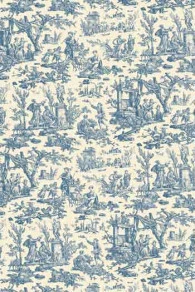 Petit porte-cartes pliant dont l’extérieur est fait de notre toile de Jouy cirée Offrande à l’Amour bleu miniature et l’intérieur dans le même tissu en rouge.