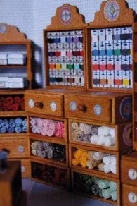 Ce présentoir de mercerie Laine Saint-Pierre miniature est la réduction à l’échelle 1/12e du véritable présentoir 24 cartes. Il est fabriqué en bois de hêtre pourpre, teinté merisier.