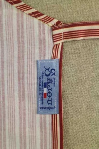 Tissu et liens : 100 % coton – Étiquette Sajou bleue sur un des côtés.