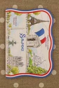 Tissu à petit motif répétitif d’arbres miniatures et de lignes bleu blanc, rouge. Il peut être assorti à deux autres tissus : – notre motif Ma belle Ville de Paris, qui représente une vue panoramique imaginaire des principaux monuments de notre belle capitale, et un petit motif répétitif de tours Eiffel et d’Arcs de Triomphe.