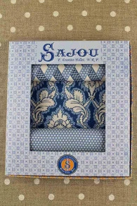 Deux coupons tissus Damas bleu et 2 bobines de fil en boîte cadeau