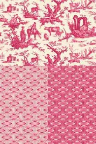 Bien que d’un aspect très moderne, ce motif géométrique sur fond crème date des années 1800, il avait été dessiné à l’origine en marron et écru. Ce tissu peut être assorti à deux autres motifs : Plaisirs de la Campagne rose, qui est le motif principal, et un motif identique mais imprimé en négatif, soit en crème sur fond rose.