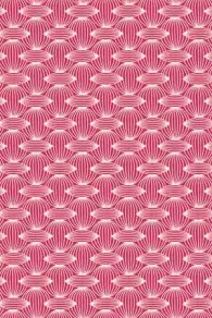 Trois coupons de tissus Plaisirs de la campagne rose, un motif Jouy dans les rose vif et crème, et ses deux coordonnés, un motif géométrique en positif et négatif.
