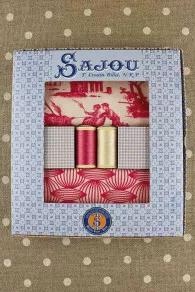 Trois coupons toiles de Jouy rose en boîte cadeau