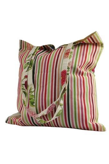 Pour ce sac rectangulaire, nous avons choisi deux tissus de notre collection Les roses de Joséphine : le tissu principal et le coordonné n° 2, motif à rayures verticales. Les anses mesurent 62 centimètres et sont faites dans le tissu principal.