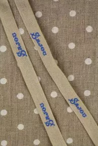Pour ce sac rectangulaire, nous avons choisi deux tissus de notre collection Oh! Mais c’est Versailles : le tissu principal Ă©voquant une promenade dans les diffĂ©rentes Ă©poques du château, et le coordonnĂ© n° 2 reprĂ©sentant le motif rĂ©pĂ©titif du portrait de Marie-Antoinette. Les anses sont faites d’une sangle de lin de 2 cm de large qui, tous les 8 cm, est sĂ©rigraphiĂ©e du nom de Sajou en bleu. Les anses mesurent 66 cm et la sangle est en double, pour plus de confort.