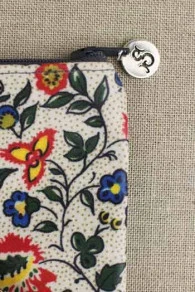 Cette trousse se ferme par une fermeture à glissière avec un médaillon Sajou argenté.