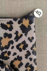 Cette trousse se ferme par une fermeture à glissière avec un médaillon Sajou argenté.